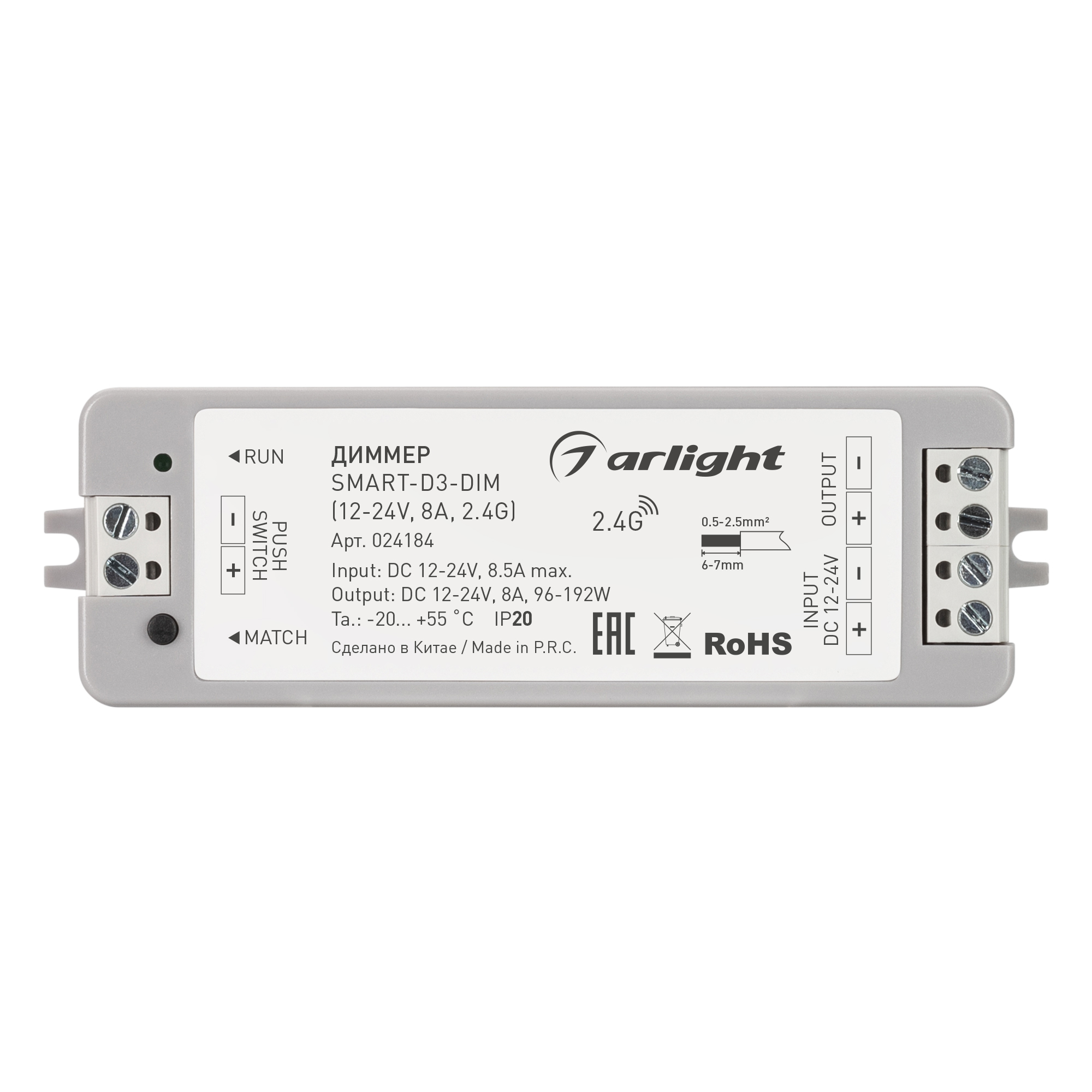 Диммер SMART-D3-DIM (12-24V, 8A, 2.4G) (Arlight, IP20 Пластик, 5 лет) 024184 в Томске