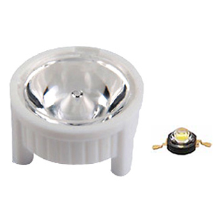 Одиночная линза со съемным холдером белого цвета для мощного светодиода Emitter. Угол обзора: вертикальный 10°, прозрачная линза. Материал PMMA. Диаметр 23 мм, высота 14.1 мм.